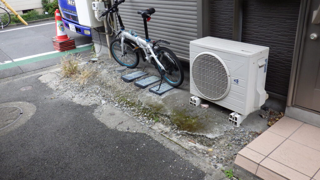 アパート玄関前の傾斜のある土間部分について、経年劣化により表面のひび割れや剥離が進み、歩行時の安全面にも配慮が必要な状態となっていました。