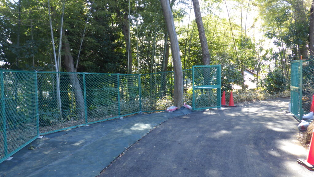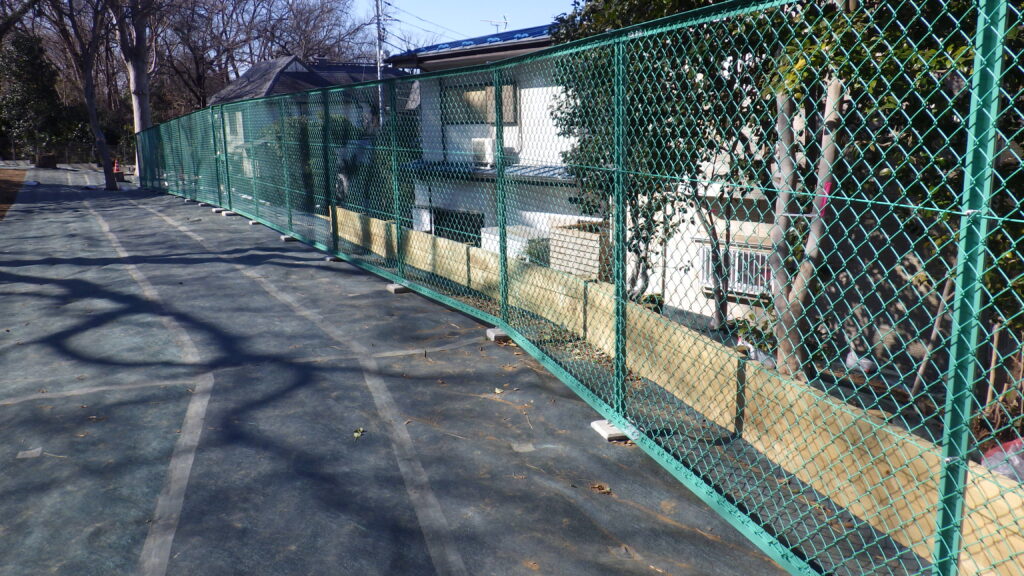 区が管理する公園にて、防草対策・ネットフェンス設置・入口部のアスファルト舗装工事を行いました。