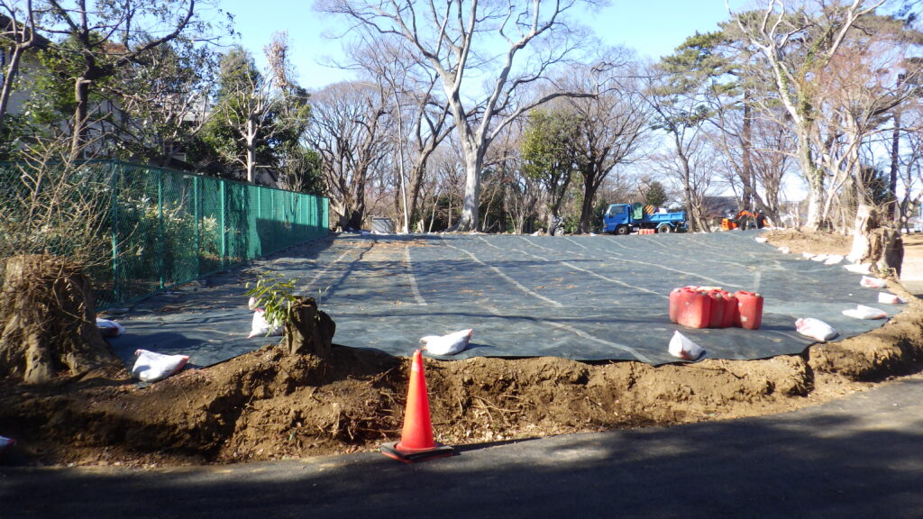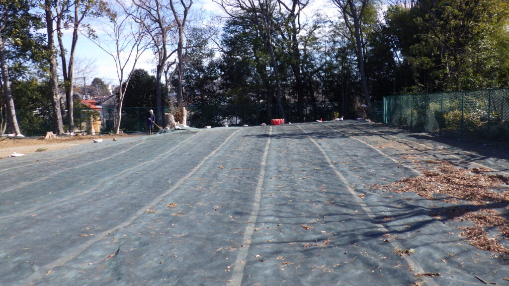園内には樹木が多く、伐採後の幹や根が残る中での作業となり、下地調整には苦労しましたが、現地状況に合わせ丁寧に施工しました。