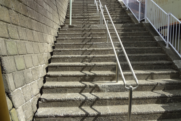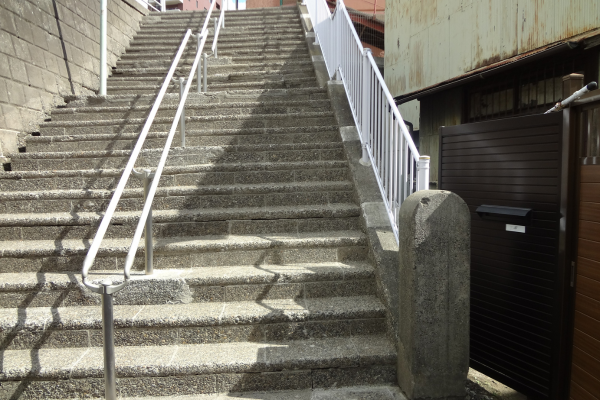 経年劣化による手摺りの破損と、急こう配で危険な階段でした。
