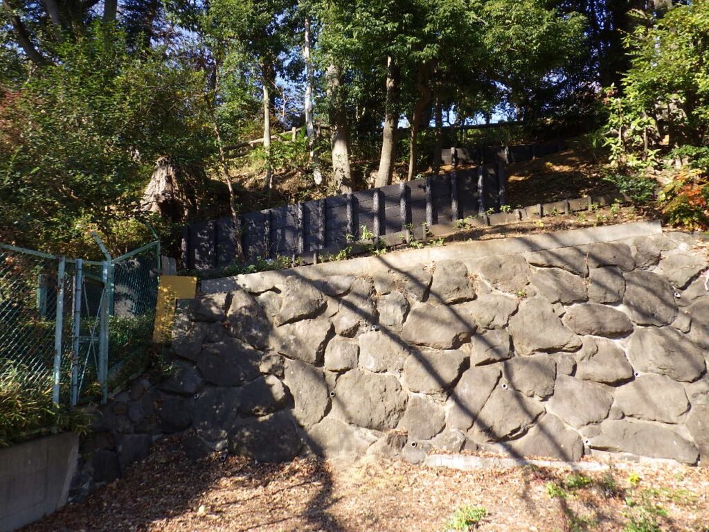 寺院敷地周囲の植栽土手における擬木土留めの補修改修工事を行いました。