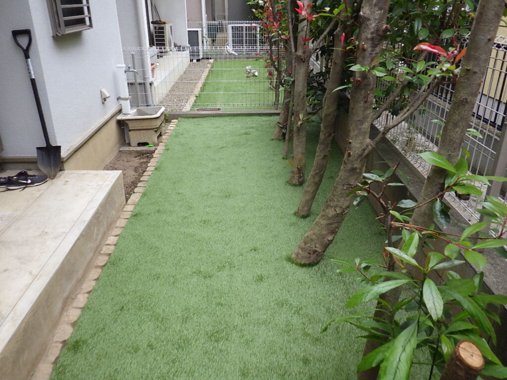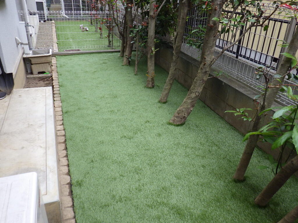今回は、毛足30mmの人工芝を使用した施工を行いました。