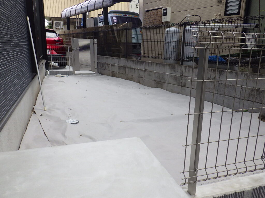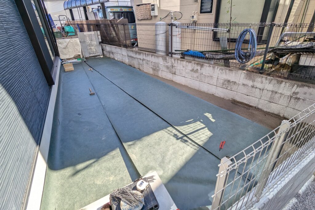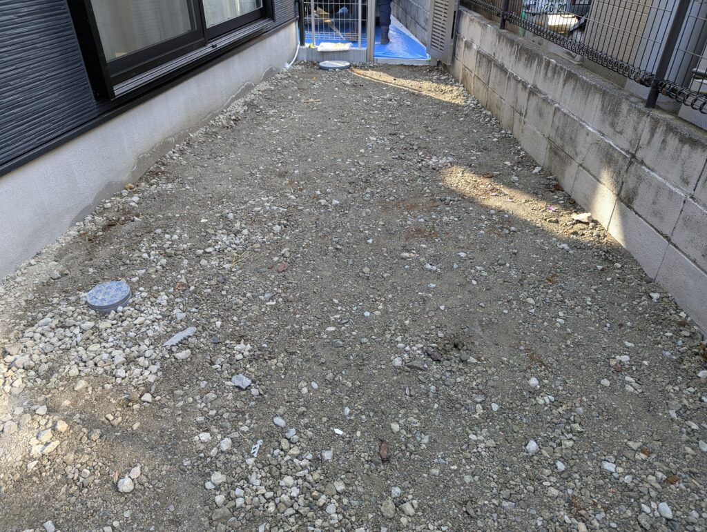 気温の低い時期での施工となり、芝の裏材が硬く扱いにくい状況ではありましたが、仕上がりの精度を意識しながら丁寧に施工を進めました。