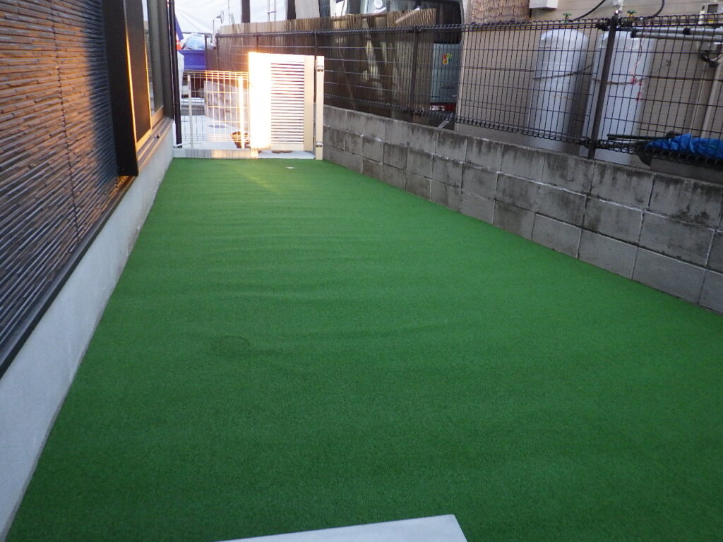 パターゴルフを楽しめるスペースとして、**人工芝(パターゴルフ用 8㎜)**の施工を行いました。