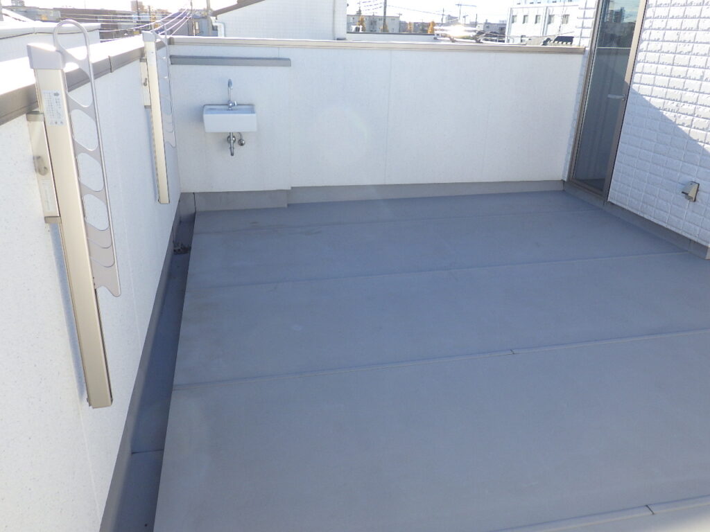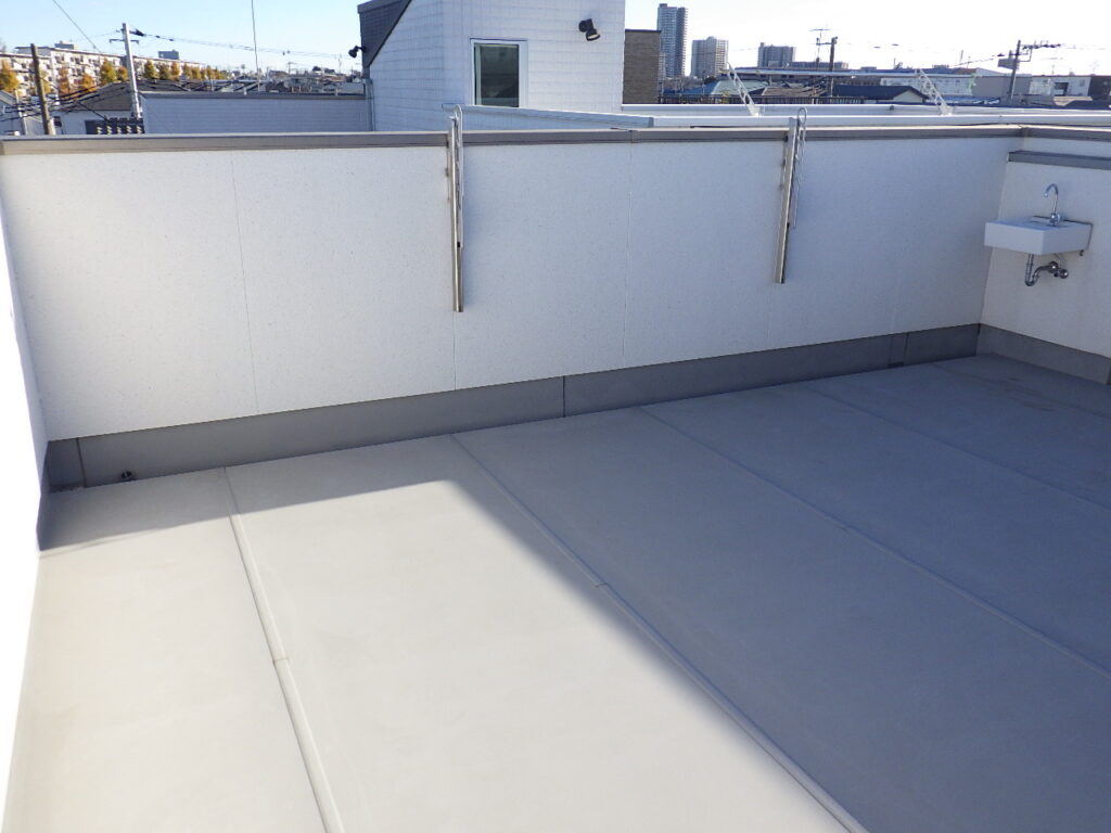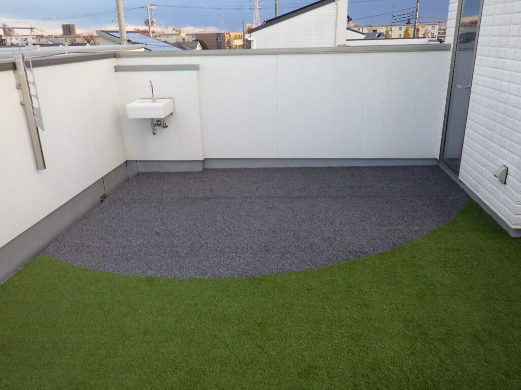 戸建て住宅の屋上スペースに、**人工芝30㎜**の施工を行いました。