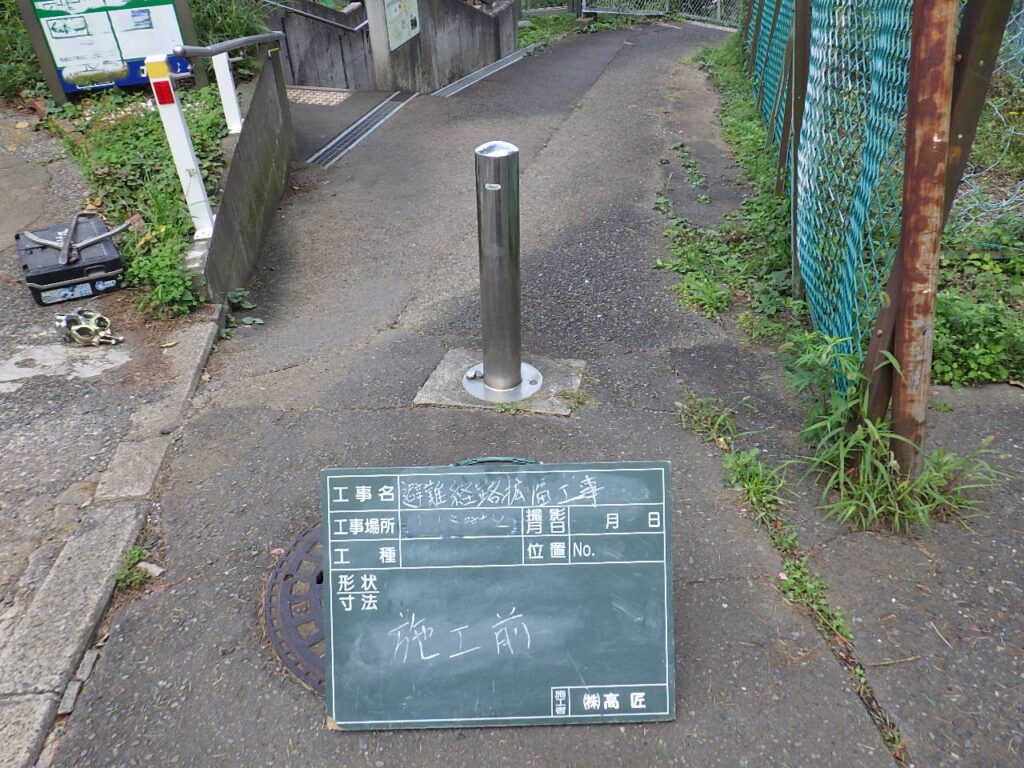 道路拡幅工事+ネットフェンス+ボラード設置(自費工事)
