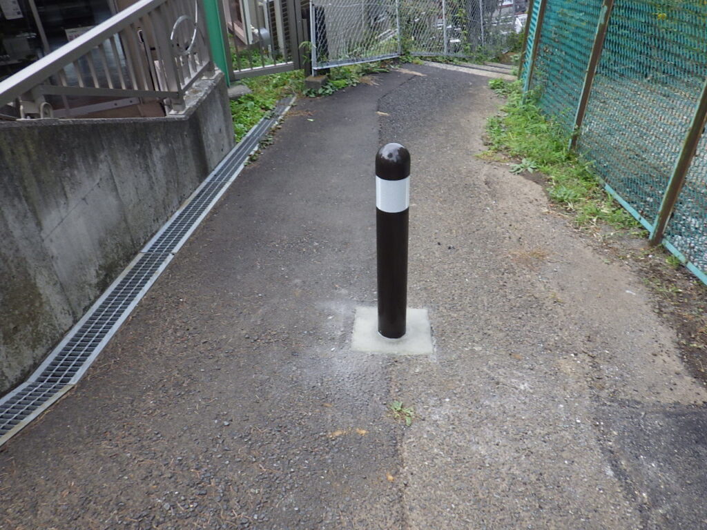 フェンスを移設した部分は新たに舗装を行い、既存のボラード(車止め)は撤去のうえ、位置を調整して本数を増やして再設置しました。