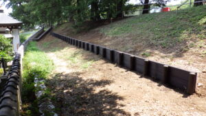 霊園内 墓地側法面 土留め工事(擬木)